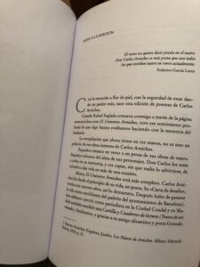 El poeta Rafael Inglada ha tenido a bien meterse en esta aventura de dar a conocer la obra poética del bisabuelo, los versos de Carlos Arniches. Es un honor para nosotros que Rafael nos acompañe en esta aventura del Universo Arniches. Queremos recuperar lo que nos quiso decir Carlos Arniches. Ahora tenemos un primer compendio de su alma, su alma de poeta. Es emocionante descubrir esta faceta del dramaturgo. Gracias Rafael.