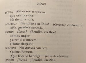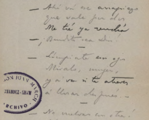 Si nos fijamos en los cantables de la izquierda, se menciona uno «Ese arrapiezo vale por dos». Si nos fijamos ahora en el texto manuscrito de Carlos Fernández Shaw, comienza con la frase: «- Ahí va ese arrapiezo» y en la segunda: » que vale por dos»