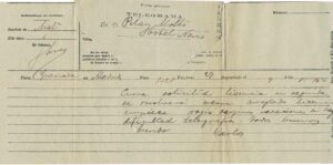 En este le conmina a terminar con la licencia de forma súbita, que lo finiquite pronto. “Cursa solicitud licencia en seguida. Se resolverá en casa. Arreglado licencia empieza mejor algunas vacaciones. Si hay dificultad telegrafía. Todos buenos. Carlos”