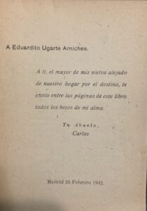 ¡Qué ilusión recibir tus letras! Estaremos encantados de tenerte entre nosotros, en nuestro UNIVERSO ARNICHES, que como sabes va creciendo año tras año. El texto de tu hija fue muy emocionante, nos hizo crecer como grupo familiar, y ahora con el tuyo estamos completando una de las ramas de la familia Arniches que tanta falta nos hace. Eduardo Ugarte Arniches, nieto mayor de Carlos Arniches Barrera fue muy importante en la vida del dramaturgo, es el único a quien dedicó una obra, «El hombrecillo», obra que refleja el alma de Carlos, su capacidad de adelantarse al futuro y que quiso, sin ningún género de duda, que guiara los pasos de Eduardo. Es una obra llena de amor, de superación y de toma de decisiones; le estaba diciendo a su nieto que estuviese atento a las señales que le manda la vida, que descubra las malas y que las aparte de su camino; que abrace las buenas y las explore al máximo. Me alegra que la vida pasada con Eduardo llevase tanta luz a todas vosotras, es lo menos que os merecéis.