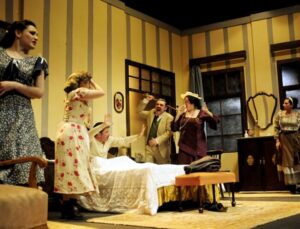 Nicomedes no abandona la cama tan fácilmente y el primer acto se desarrolla entero en su cuarto sin que él salga de la misma.