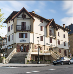 El primer acto se desarrolla en Zarautz, en un hotelito elegante como el que hemos puesto en la foto. En el escenario vemos al foro una vidriera que da al jardín con unas escaleras que bajan al mismo. Delante vemos un caballete con un retrato sin terminar. En el centro del escenario hay un sofá color hueso, un velador con cigarrillos, periódicos, butaquitas y sillas; el suelo imita a parquet. Por la derecha dos puertas a habitaciones interiores. Son las ocho de la mañana de un espléndido día de Agosto. Al levantar el telón vemos la escena a oscuras, y aparecen dos doncellas del hotel haciendo la limpieza: Teresa y Agustina. Abren las ventanas y entra el sol.