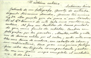 -Señores….así –indica Ojeda, cubierto con el paño negro y haciendo mover la máquina para darle la colocación conveniente-. Quietos un momentito –sacando la cabeza-. Muy bien. Perfectamente; pero tenga la bondad de sonreírse la academia –todos los muchachos ponen cara de forzada sonrisa-. Muy bien. El señor profesor… un poco menos jubiloso –el profesor se pone serio-. Perfectamente. El joven segundo izquierda….