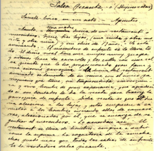 Obra conseguida gracias a La Fundación Mediterráneo. La Llum. Sería su obra número 134 en solitario. Pertenece a su Etapa Moralizante. Es un boceto para un sainete lírico en 3 actos, posiblemente de 1905 a 1910, atendiendo a los nombres que aparecen como posibles actores y actrices.